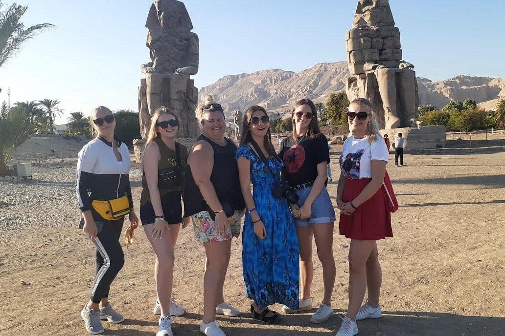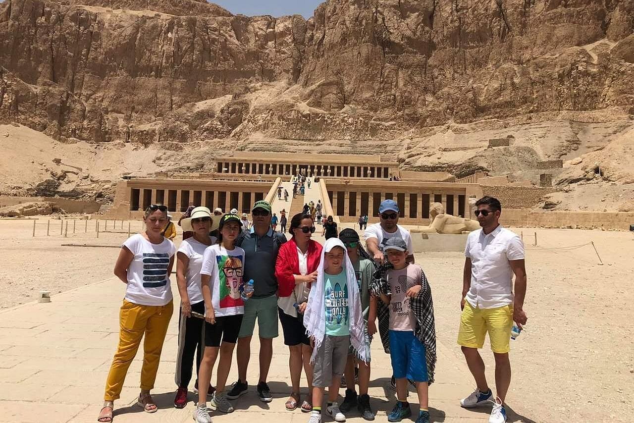 Your adventure begins on the legendary West Bank of the Nile, where you will step back in time to explore the sacred Valley of the Kings. Walk in the footsteps of pharaohs as you descend into the depths of their legendary tombs, an intricate maze of burial chambers filled with vibrant hieroglyphs. Accompanied by a knowledgeable Egyptologist guide, you'll unlock the secrets of this vast necropolis. The journey continues to the breathtaking Mortuary Temple of Hatshepsut, a magnificent terraced complex rising from the desert cliffs in tribute to Egypt's most powerful female ruler. Pause to marvel at the Colossi of Memnon, the two towering stone sentinels that have stood guard over the Theban plains for millennia.