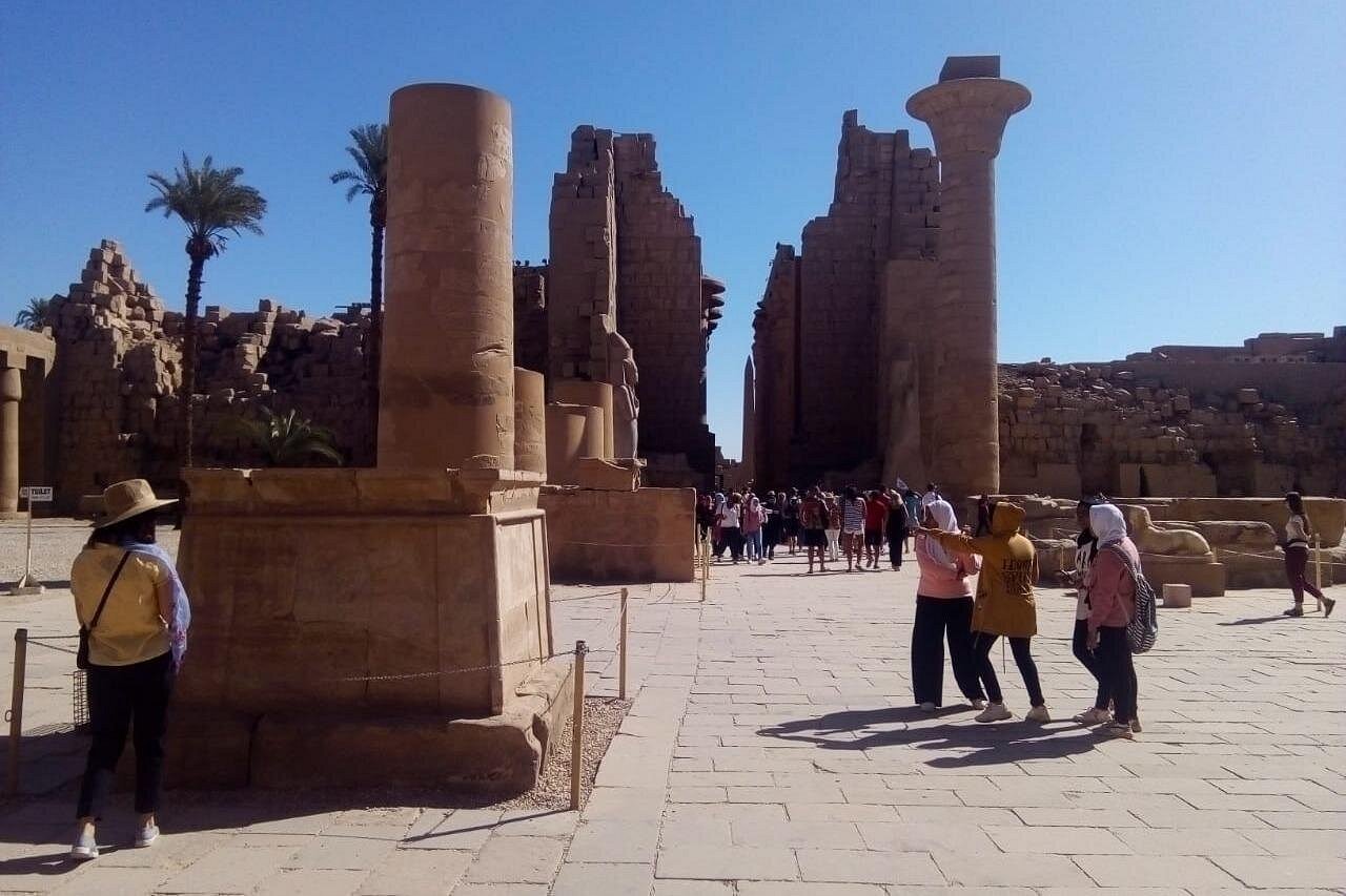 Here, the colossal Temple of Karnak awaits. Prepare to be humbled as you wander through its awe-inspiring complex, a vast city of temples, obelisks, and pillars erected over centuries. Gaze up at the towering columns of the Great Hypostyle Hall, a forest of stone that will leave you in awe of ancient engineering. As your tour continues, you'll have the perfect photo opportunity at the majestic Luxor Temple, capturing its grand facade against the backdrop of the modern city.